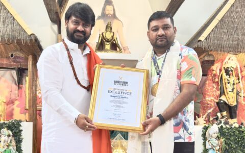 3 months ago Tags News Jagath Guru Dr. Vasanth Vijaynand Giriji Maharaj Recognized by World Book of Records UK for Largest Navratri Pandal in Indore (India) Indore, India: In a stunning display of devotion and architectural brilliance, Jagath