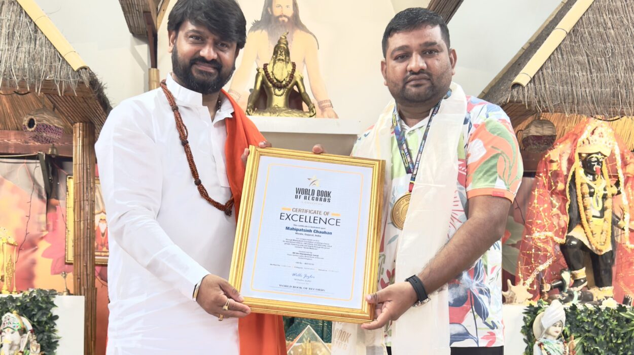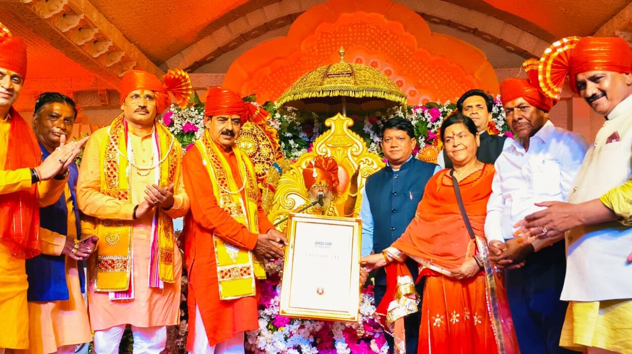 2 months ago Jagath Guru Dr. Vasanth Vijaynand Giriji Maharaj Recognized by World Book of Records UK for Largest Navratri Pandal in Indore (India)