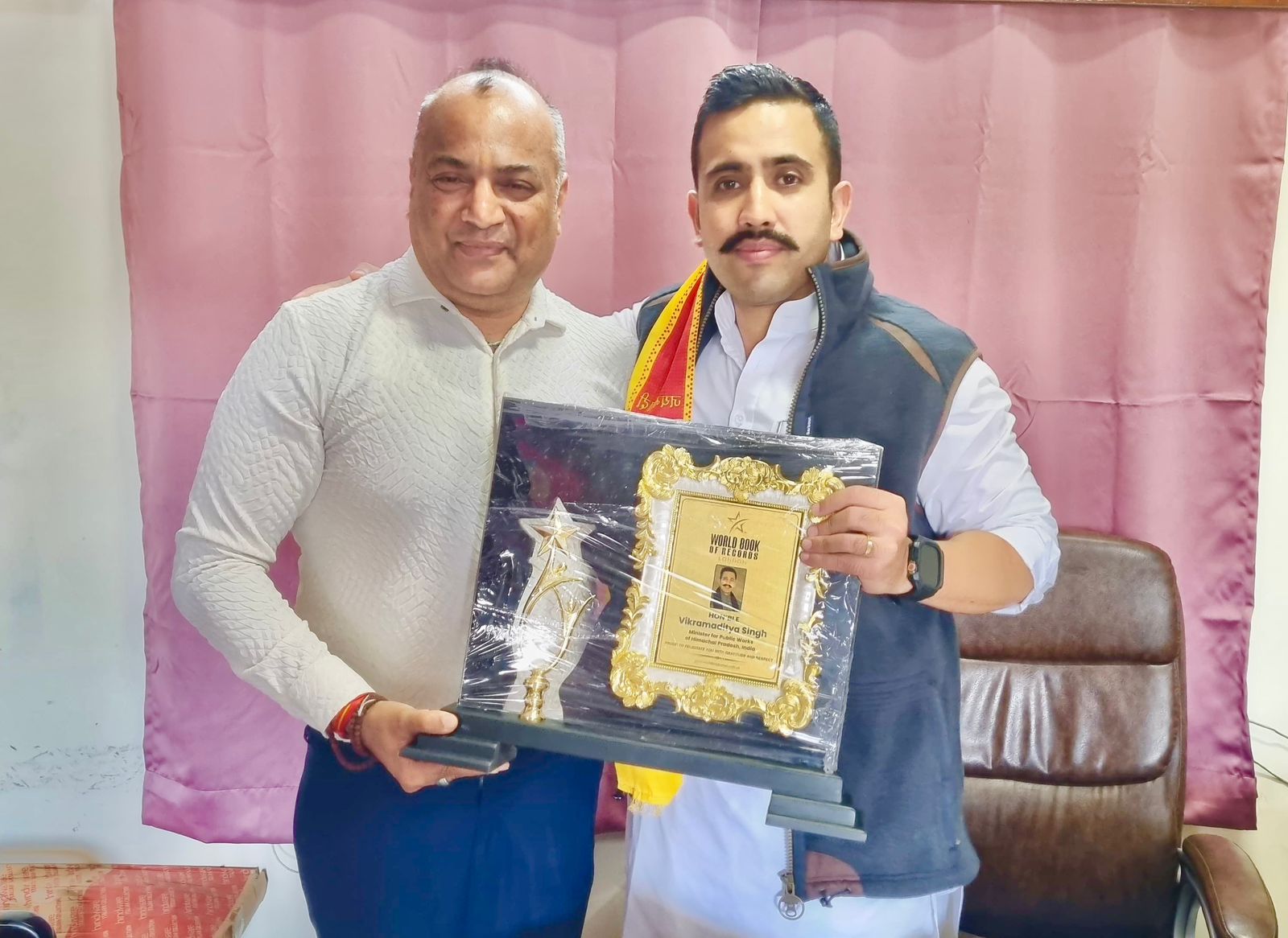 Himachal Pradesh’s Public Works Department Minister, Vikramaditya Singh, has been honored with the prestigious Youth Icon and Intellectual Politics award by the World Book of Records UK. His name has now been officially entered into World Book of Records.