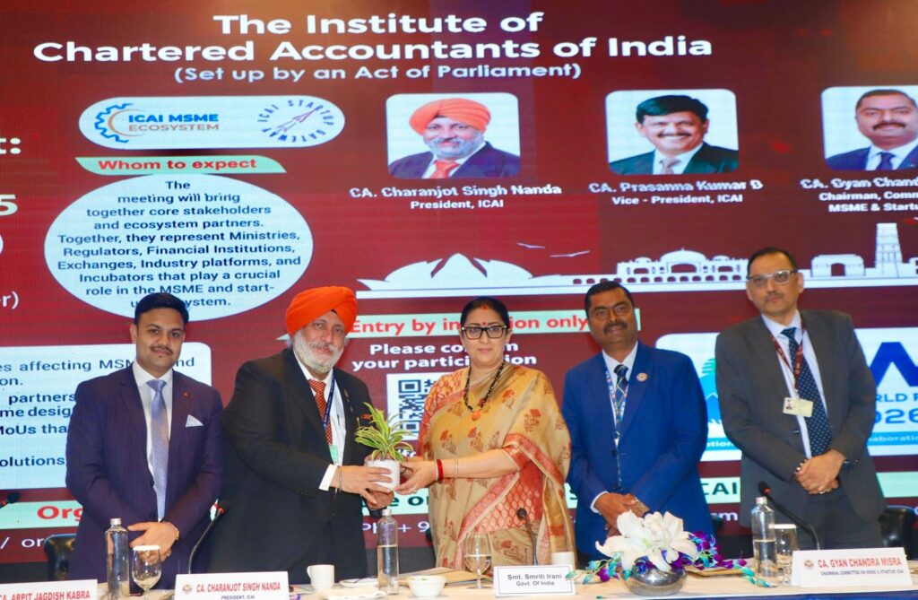 - The ceremonial ceremony was inaugurated by Smriti Irani, Former Union Cabinet Minister, Government of India, who appreciated ICAI’s contribution towards empowering small businesses and start-ups — the backbone of India’s economic growth.