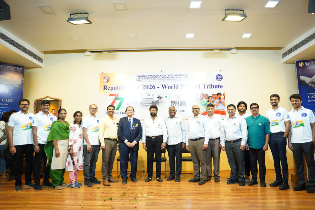 Hyderabad, Telangana, India: In a remarkable display of resilience and medical advancement, survivors of laryngeal cancer created history at the Basavatarakam Indo-American Cancer Hospital and Research Institute by setting a world record for a National Anthem recital. The ceremony took place on commemorating Republic Day of India, and was officially certified by World Book of Records.