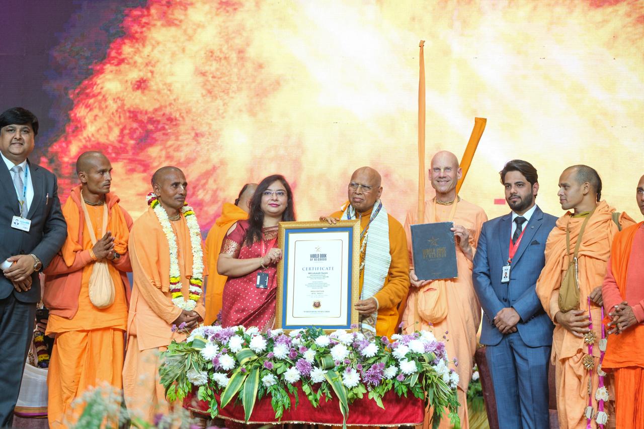 Shri Mangubhai C. Patel, the Hon. Governor of Madhya Pradesh, presented Dr. Brajbala Tiwari and Shri Sunil Tiwari with entries in the World Book of Records at Indore